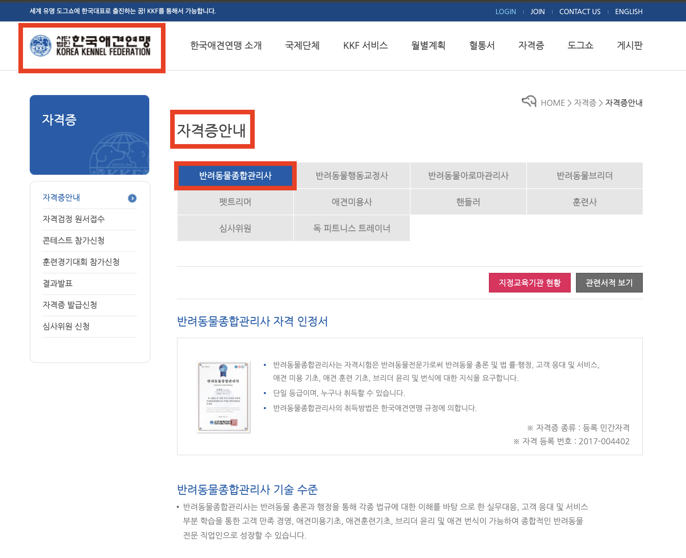 반려동물종합관리사 (한국애견연맹)