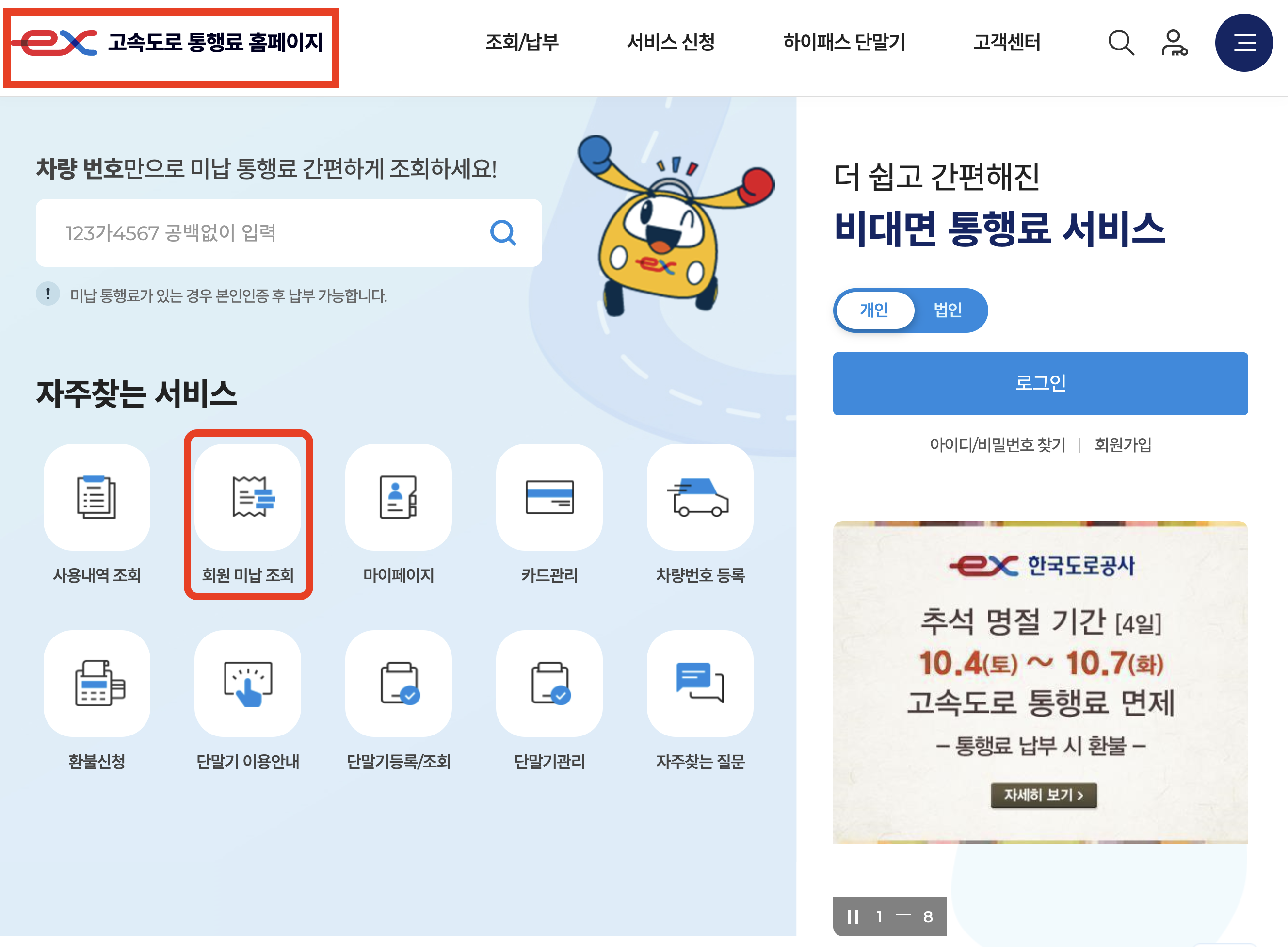 하이패스 미납요금 납부 방법